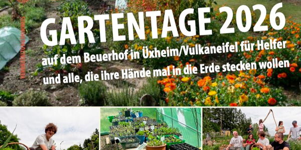 Auch in diesem Jahr lädt der Beuerhof ab 22. Februar bis 11. Oktober zu seinen Gartentagen ein. Für alle, die ihre Hände mal in die Erde stecken wollen, melden sich bei Sven an: 0157-3612 8703